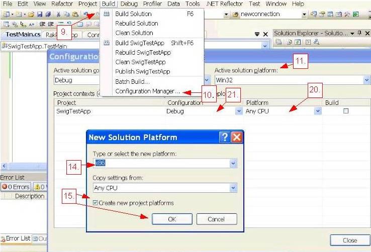 Windows Note: If you do not plan on using SQLiteClientLoggerPlugin, DependentExtensions\Swig\DLL_Swig\RakNet.sln already contains a DLL project that makes the Swig files, builds the DLL, and copies it to the C# sample. You do not need to run these steps if you use that project. In that case, run the solution, rebuild the project, and goto "Creating the C# project" Creating the Swig DLL