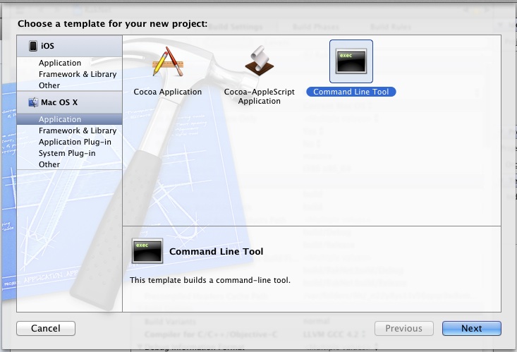 - Create a "Command Line Tool" project, and name it ChatExampleClient